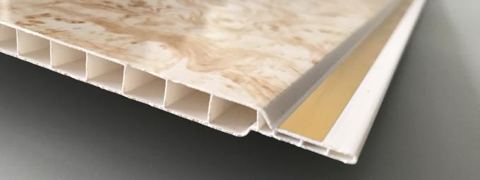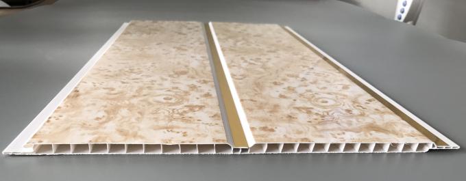 प्रिंटिंग सतह के साथ 7 मिमी मोटाई पीवीसी दीवार पैनल, मध्य में गोल्डन लाइन्स