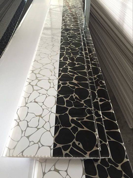 सफेद मुद्रांकन 250 मिमी सजावटी पीवीसी पैनलों सफेद और काले शिनिंग