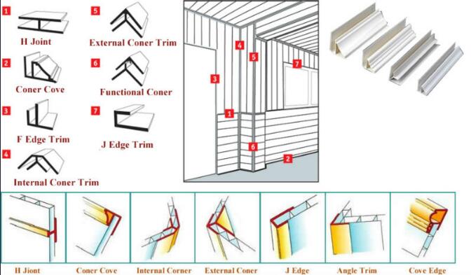 (1) दीवार और दीवार के कोने पर, हम दो टुकड़ों को जोड़ने के लिए बाहरी पीवीसी एक्सट्रूज़न प्रोफाइल का उपयोग कर सकते हैं