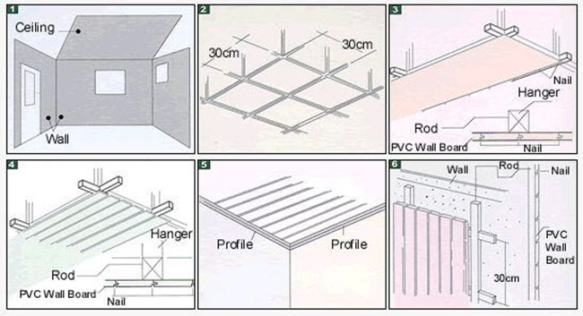 3) पीवीसी छत पैनलों को स्क्रू या मुख्य बंदूक के साथ 38 मिमी * 38 मिमी लकड़ी के ब्रांडिंग पर लगाया जा सकता है। स्टील ब्रांडिंग का भी इस्तेमाल किया जा सकता है। ब्रांडिंग में 3.5 मिमी छेद ड्रिल करें, फिर इसमें 4.5 मिमी * 15 मिमी स्क्रू पेंच करें।