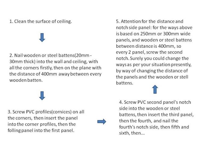 पीवीसी पैनल दोनों दीवारों और छत पर उपयोग के लिए डिज़ाइन किया गया है। सिरेमिक टाइल्स के विकल्प के रूप में, इन पीवीसी पैनलों को साफ करना आसान होता है और बैक्टीरिया या मोल्ड ग्रोथ का समर्थन नहीं करते हैं। वे ऐसे उपयोगों के लिए बहुत अच्छे हैं जैसे क्षतिग्रस्त या दागदार छत को कवर करना, पुराने आर्टेक्स को कवर करना या यहां तक कि कार्यालयों या अध्ययनों जैसे दीवार पेपर के विकल्प के रूप में।